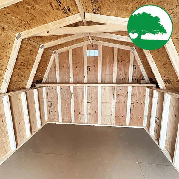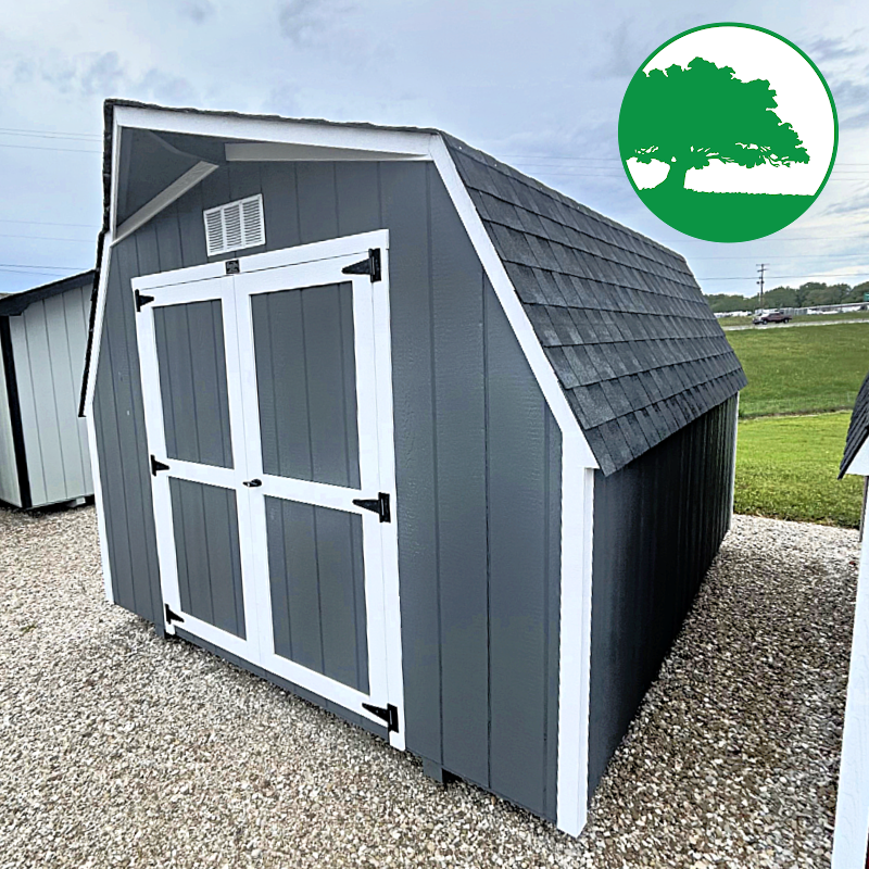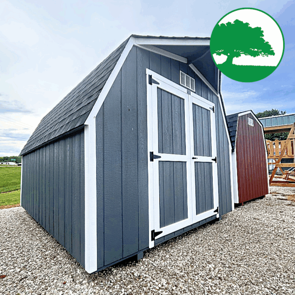 Features: 5′ Classic Double Doors, 4′ Sidewall Height, Double Doors, 10′ Shelf on Back Wall, 2″ x 4″ Floor Joists (12″ o.c.), Wall Studs (16″ o.c.), Rafters (24″ o.c.), DuraTemp Plywood Siding (50 Year Warranty), LP ProStruct Coated Flooring, 1/2″ OSB Roof Sheeting, Dimensional Shingles (30 Year Warranty) & FREE Delivery with blocks within 50 miles.
