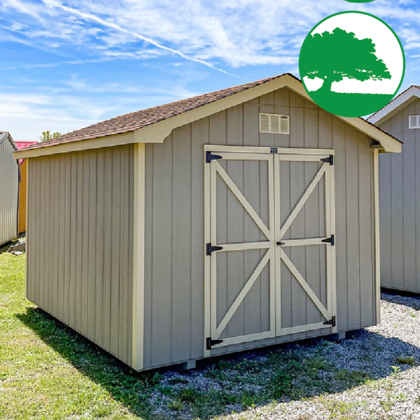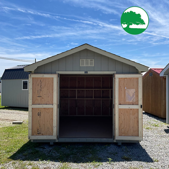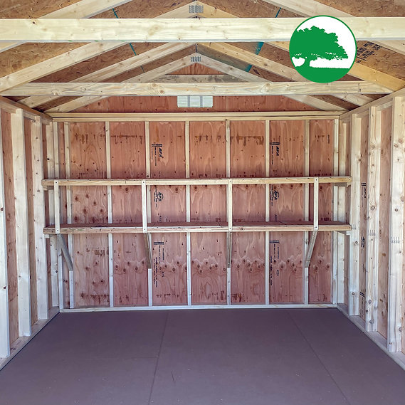 Additional Features: Double Doors, (2) 10′ Shelves, DuraTemp Plywood Siding (50 Year Warranty), LP ProStruct Coated Flooring, 1/2″ OSB Roof Sheeting, Dimensional Shingles (30 Year Warranty) & FREE Delivery with blocks within 50 miles.