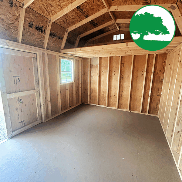Features: 6’3″ Sidewall Height, Classic 5′ Double Doors, 24″ x 30″ Aluminum Window w/ Shutters, Overhead Loft, 2″ x 4″ Floor Joists (12″ o.c.), Wall Studs (16″ o.c.), Rafters (24″ o.c.), DuraTemp Plywood Siding (50 Year Warranty), LP ProStruct Coated Flooring, 1/2″ OSB Roof Sheeting, Dimensional Shingles (30 Year Warranty) & FREE Delivery with blocks within 50 miles.