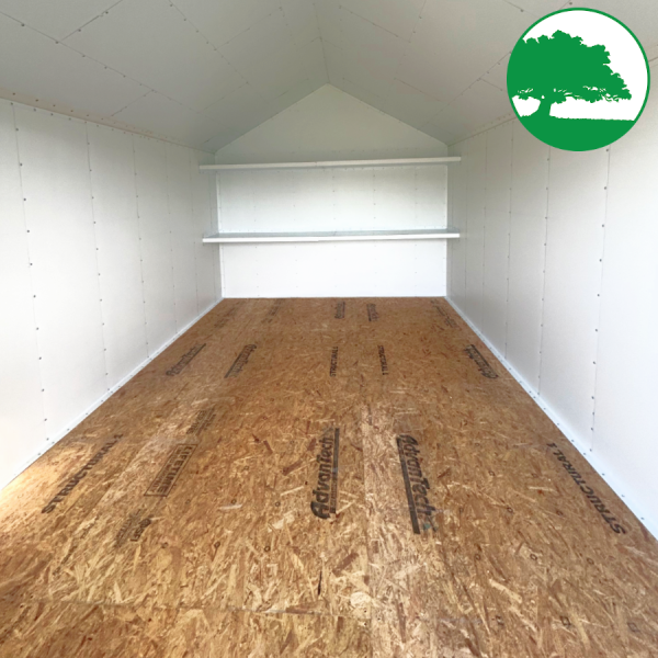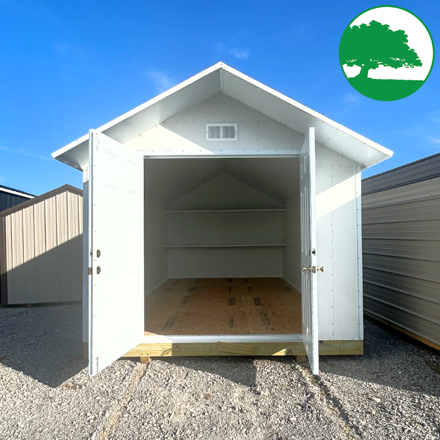 Additional Features: Double Entry Doors, Double Shelving on Back Wall, 1+3/4″ Insulated Steel Panel Construction, R15.49 Insulation Value (Floor, Walls & Roof), 2″ x 6″ Treated Floor Joists (16″ o.c.), Tongue & Groove Advantech Flooring w/ Insulated Panels Under the Floor, Weather Overhang & FREE Delivery with blocks within 50 miles of Sales Lot.