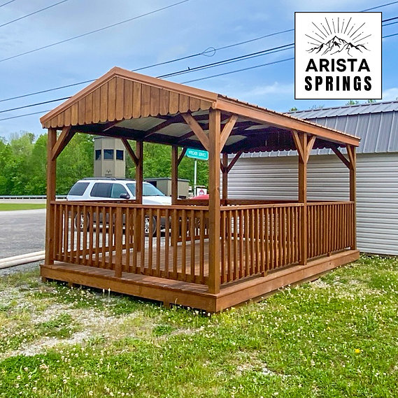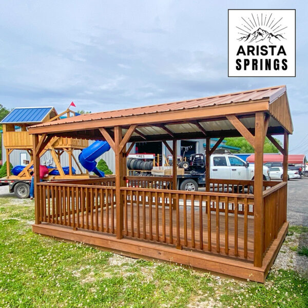 Features: 9′ 6″ Overall Height, 4′ x 4′ Posts, 5/4″ x 6″ Decking, 4″ x 6″ Pressure Treated Runners, 29 Gauge Metal Roof, 3′ Single opening / Walk through, Free Delivery with Blocks​