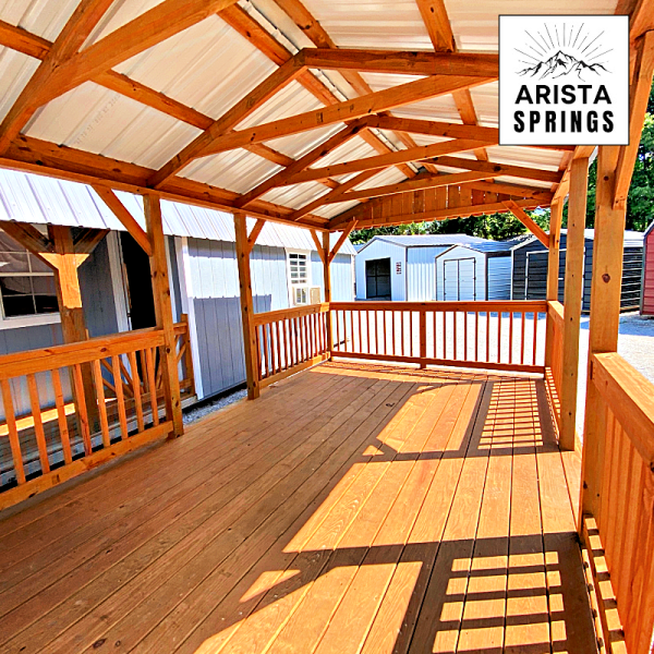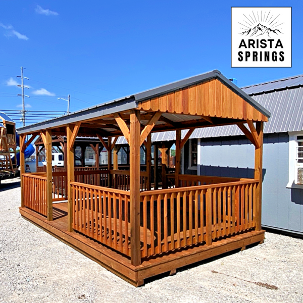 Features: 9′ 6″ Overall Height, 4′ x 4′ Posts, 5/4″ x 6″ Decking, 4″ x 6″ Pressure Treated Runners, 29 Gauge Metal Roof, (2) 3′ Openings / Walk through, Free Delivery with Blocks​