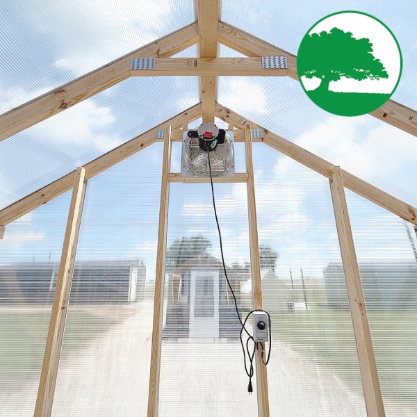 Features: Storm Door Upgrade, 8 mm Twin-Wall Polycarbonate, Worry Free Thermostat Controlled Exhaust Fan / Electric, Heat Activated Intake Vent, 2′ Plastic Gardening Bench, (2) Ground Anchors Included