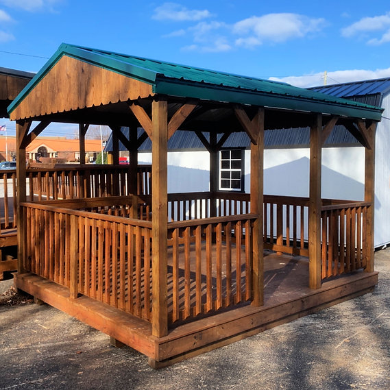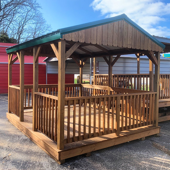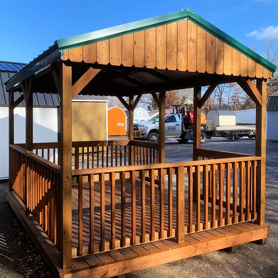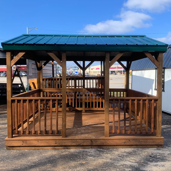 Features: 9′ 6″ Overall Height, 4′ x 4′ Posts, 5/4″ x 6″ Decking, 4″ x 6″ Pressure Treated Runners, 29 Gauge Metal Roof, 3′ Single opening / Walk through, Free Delivery with Blocks​