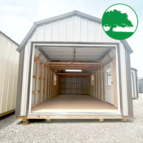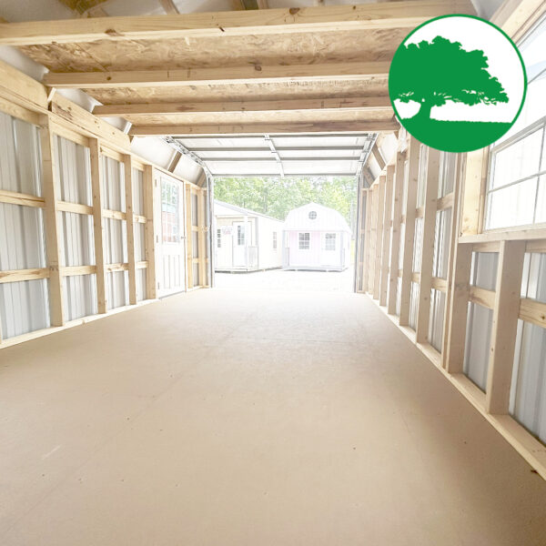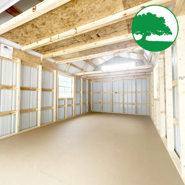 Additional Features: 9′ x 7′ Overhead Door, (2) 3′ x 3′ Aluminum Windows, 9-Lite (1/2 Glass) Fiberglass Entry Door, Double Overhead Lofts w/ Front Loft Raised, Transom Window in Back of Building, 6’3″ Wall Height, Baked-On Enamel Metal Roofing w/ Bubble Wrap below, LP ProStruct Flooring w/ SmartFinish, Heavy Duty aluminum diamond plate threshold & FREE Delivery with blocks within 50 miles.