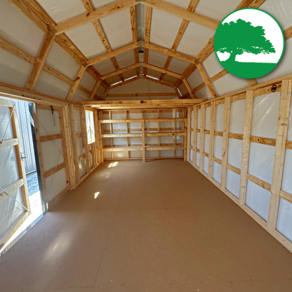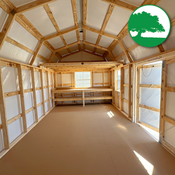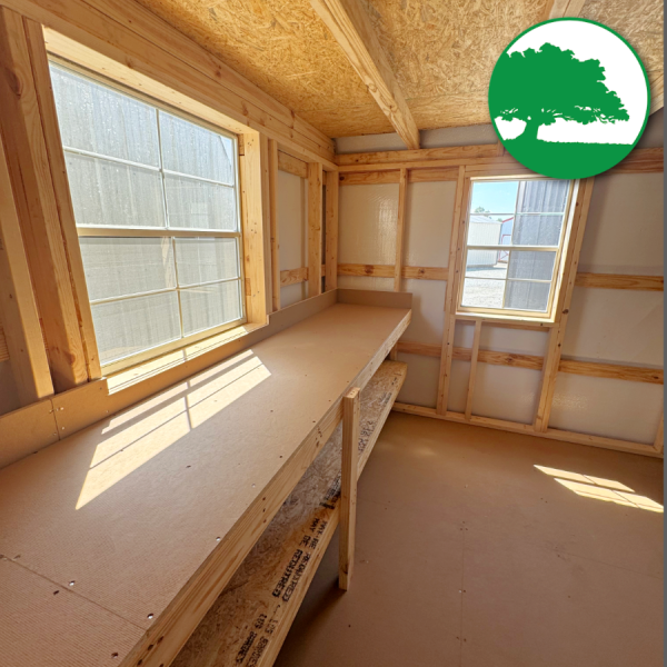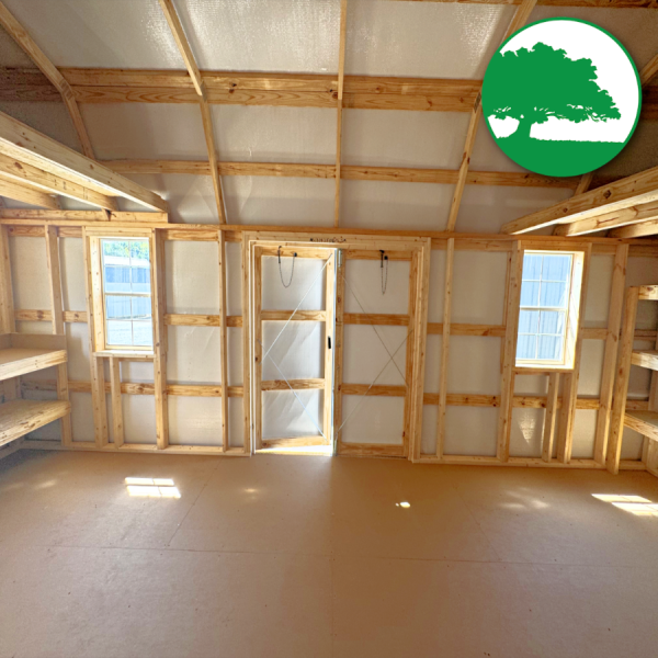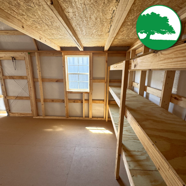 Additional Features: 6′ Double Doors, Double Overhead Lofts w/ One End Raised, (2) 2′ x 3′ Aluminum Windows, (1) 3′ x 3′ Aluminum Window, 6’3″ Wall Height, Upgraded Bubble Wrap Walls, Workbench w/ Shelving Below, 3-Tier Shelving, Baked-On Enamel Metal Roofing w/ Bubble Wrap below, LP ProStruct Flooring w/ SmartFinish, Heavy Duty aluminum diamond plate threshold & FREE Delivery with blocks within 50 miles.