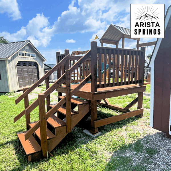 Additional Features: Standard Treated Railing, 4′ x 4′ Posts, 5/4″ x 6″ Decking, 4″ x 6″ Pressure Treated Runners, Approx 3′ Single opening w/ steps *Steps are built to code w/ (2) handrails, Free Delivery with Blocks