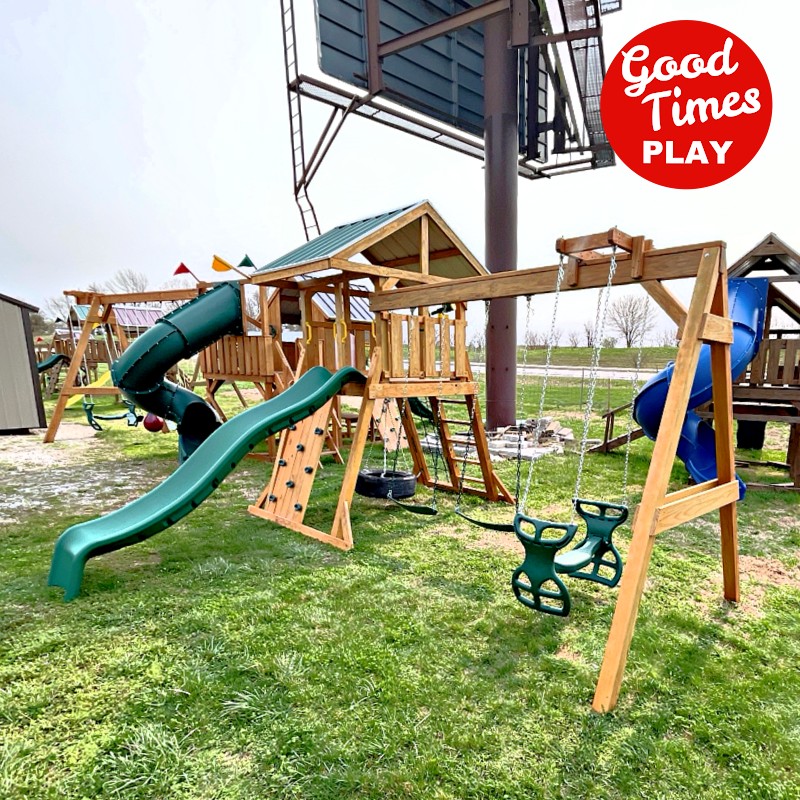 beams / accessories: 3 position swing beam with (2) belt swings & ez ryder (2-kid swing)