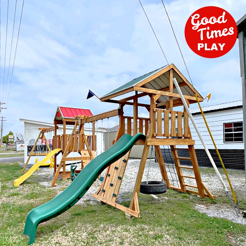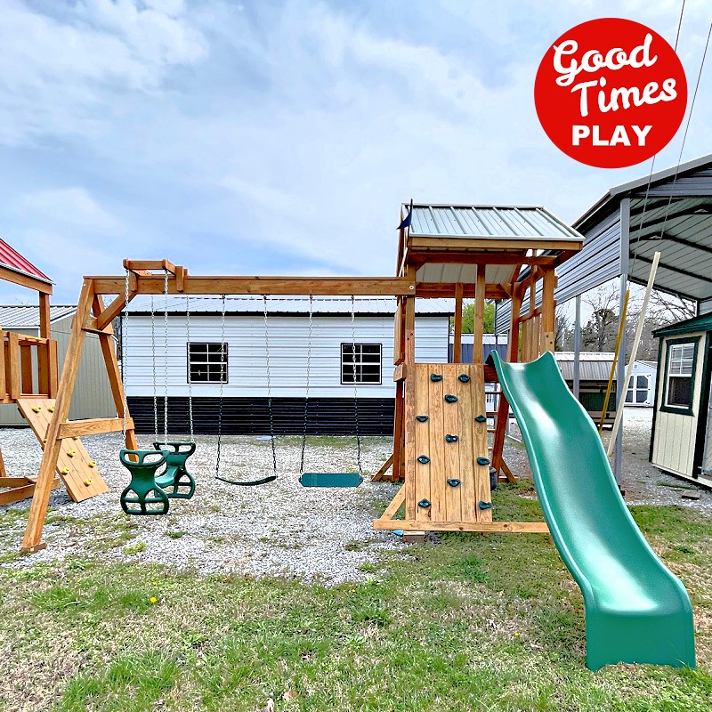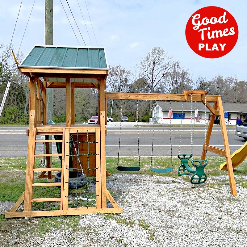 beams / accessories: 3 position swing beam with (2) belt swings & ez ryder (2-kid swing)