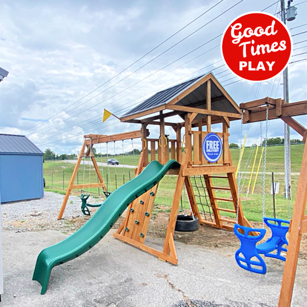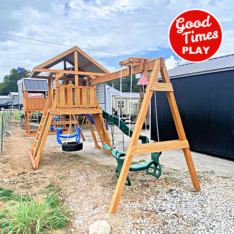beams / accessories: 3 position swing beam with (2) belt swings & ez ryder (2-kid swing)