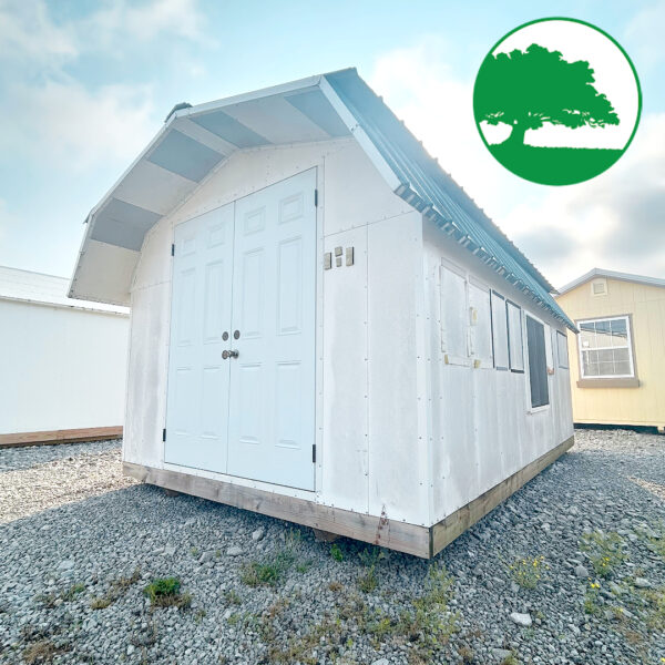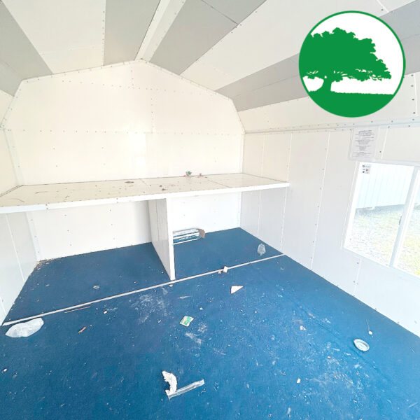 Features: R15 Insulated Fiberglass Panel Walls & Roof, Double Entry Doors, Workbench on Back Wall, Large Vinyl Window