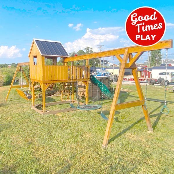 beams / accessories: 4 position swing beam with (2) belt swings, trapeze bar w/ rings & web swing, additional swing beam with 5ft adult swing