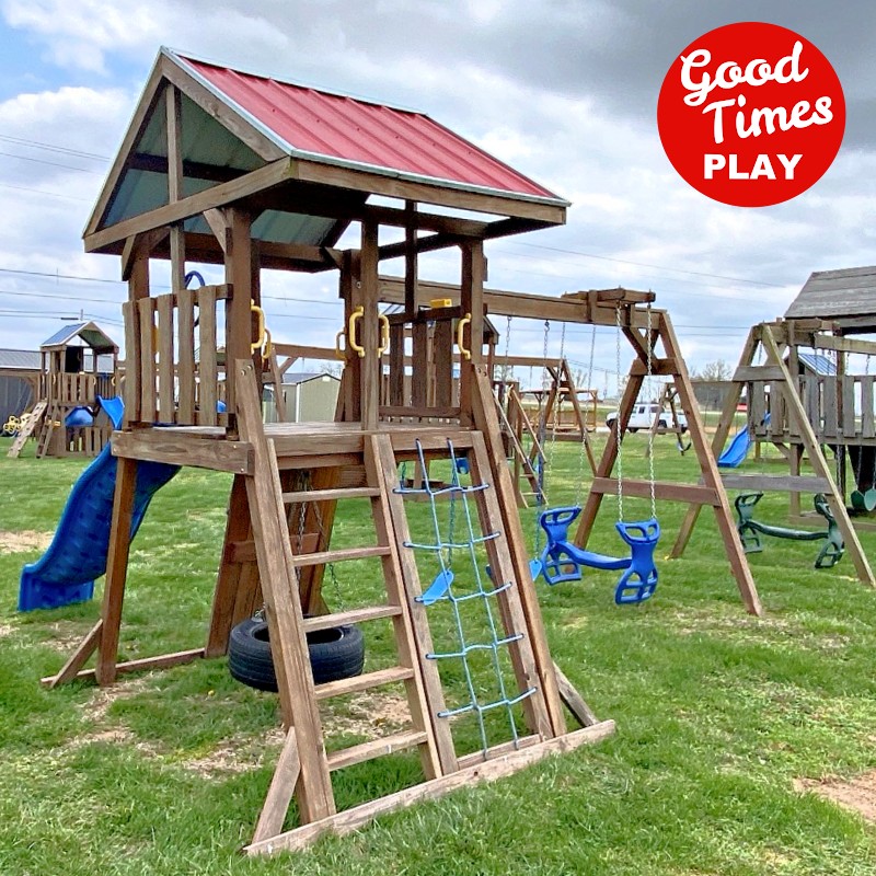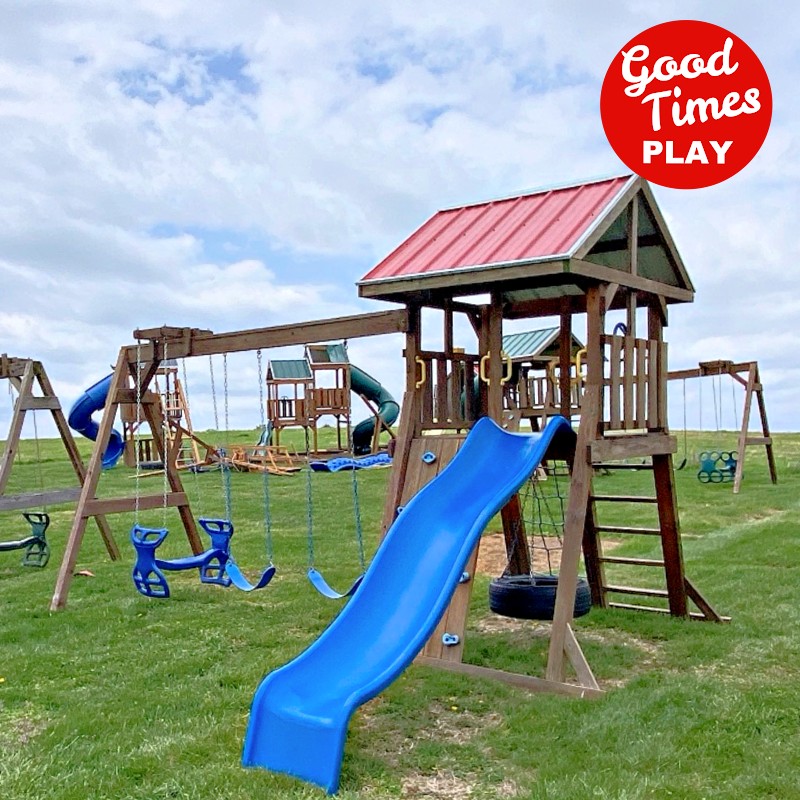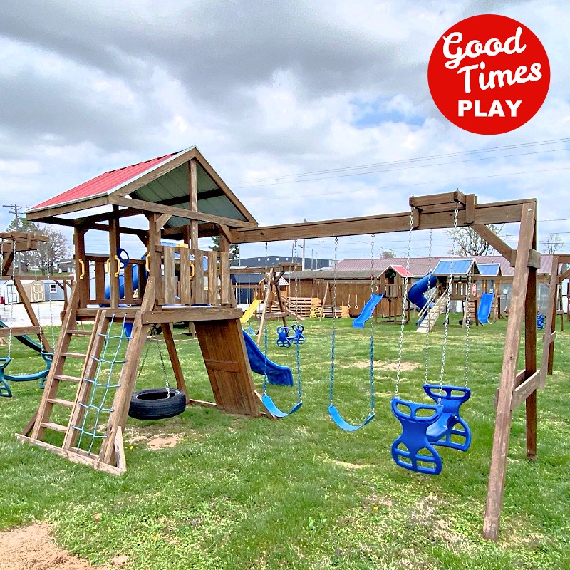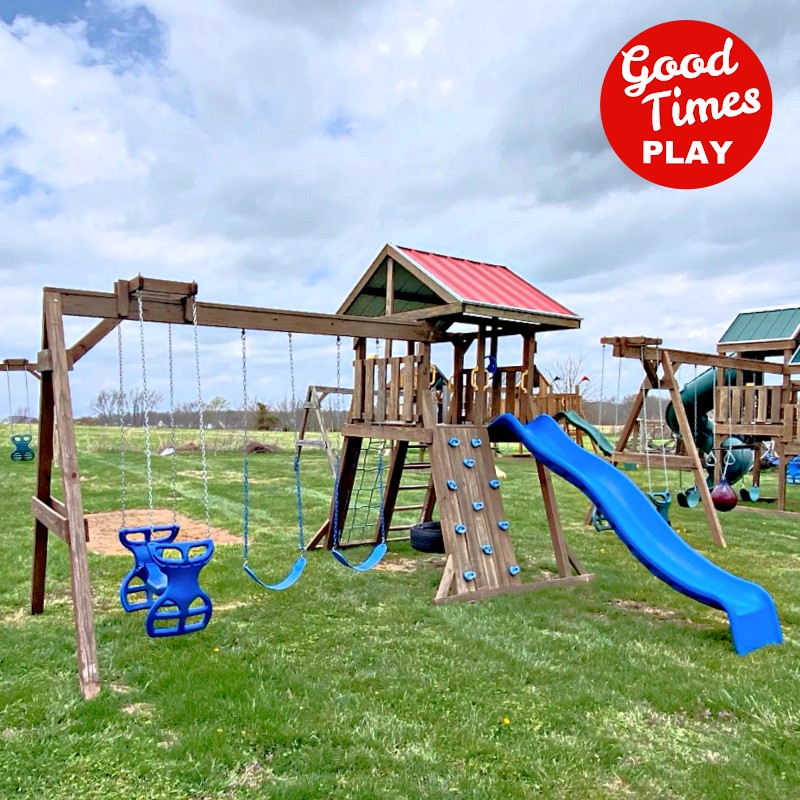 beams / accessories: 3 position swing beam with (2) belt swings & ez ryder (2-kid swing)
