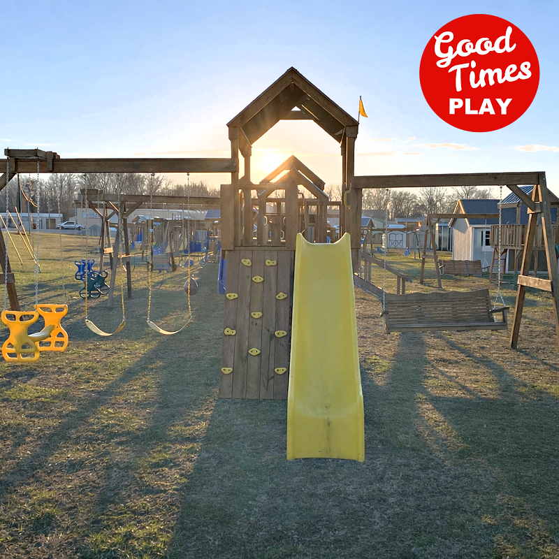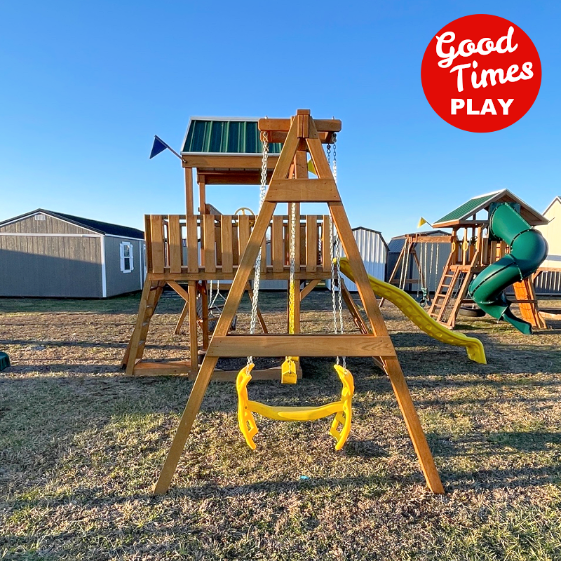 beams / accessories: 3 position swing beam with (2) belt swings & ez ryder (2-kid swing), additional swing beam with 5 ft adult swing