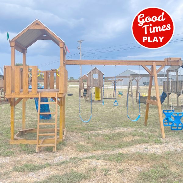 beams / accessories: 3 position swing beam with (2) belt swings, trapeze bar w/rings & ez ryder (2-kid swing)