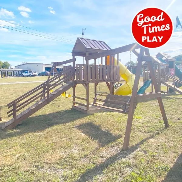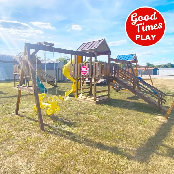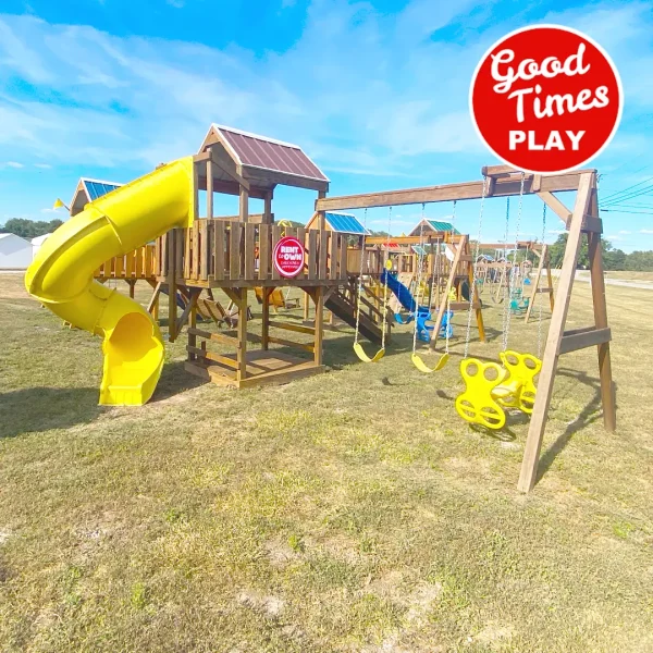 beams / accessories: 3 position swing beam with (2) belt swings & ez ryder (2-kid swing), additional swing beam with 5 ft adult swing