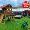 beams / accessories: 3 position swing beam with (2) belt swings & ez ryder (2-kid swing)